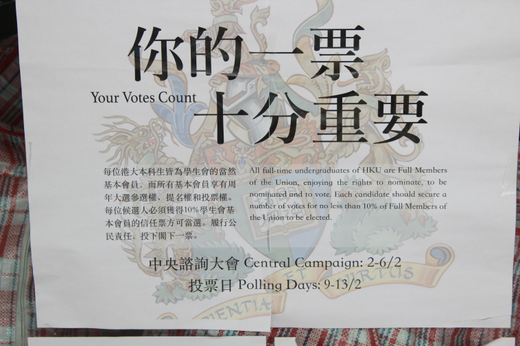 到了香港大学站,出地铁,结果发现出口是在楼上,一下就进入了香港大学,没有进校门的概率。还真有点不习惯。墙上不少海报,都是关于学联的。应该还没开学,人不多。