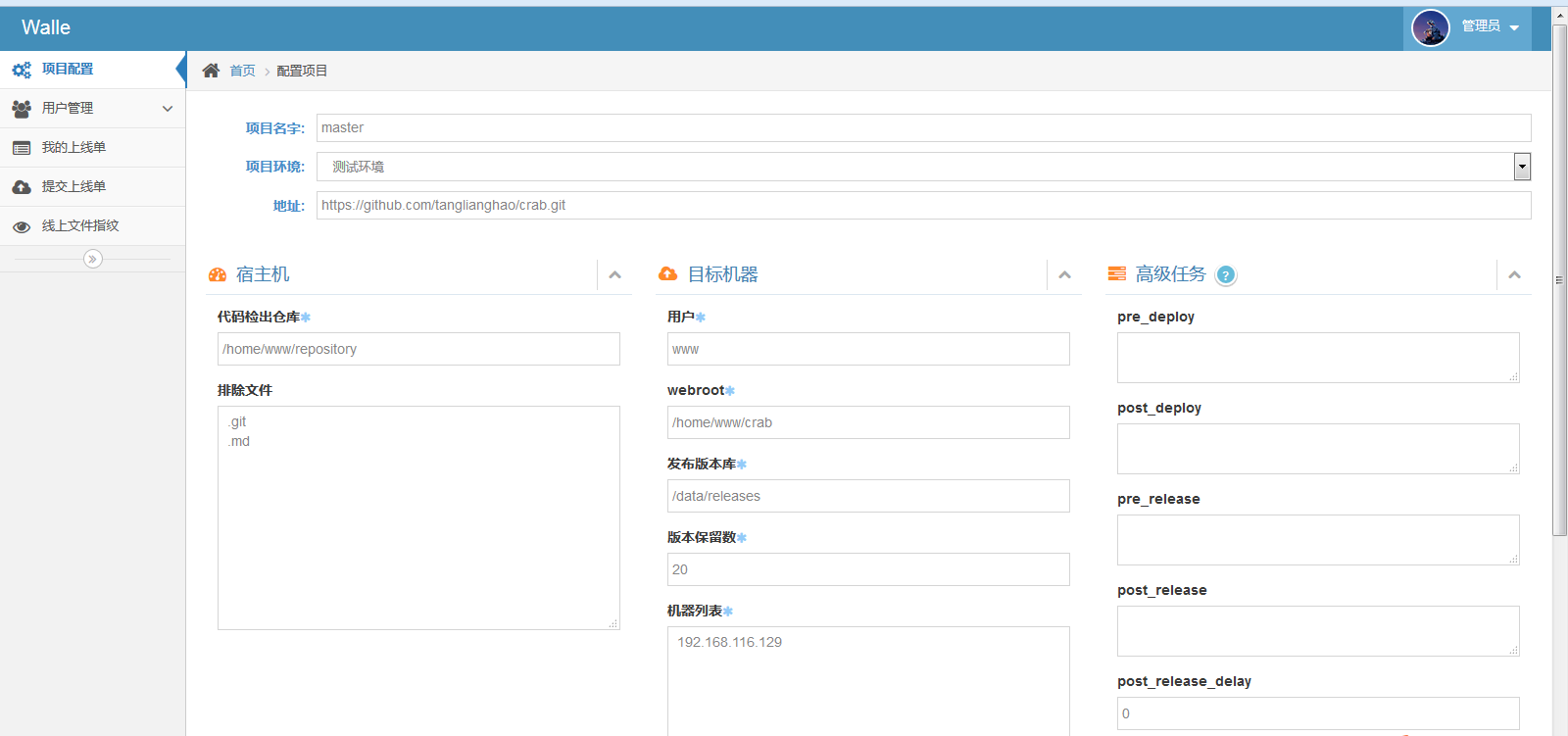 一直想要个web界面的代码发布系统,刚好发现了瓦力系统,觉得不错,尝试本地安装测试下。