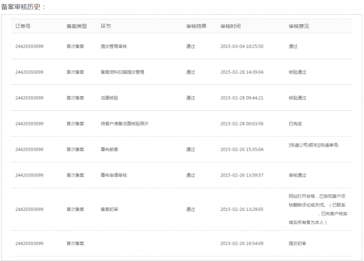 初审,阿里云客服打电话询问一些基本情况,我的网站是个人博客,客服说不能有评论功能。让删掉评论功能或者关闭网站。所以我关闭了自己网站。