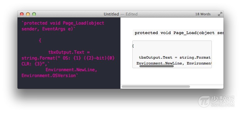 如果你是个程序猿,需要在文章里优雅的引用代码框,在 Markdown 下实现也非常简单,只需要用两个 把中间的代码包裹起来,如code`。图例: