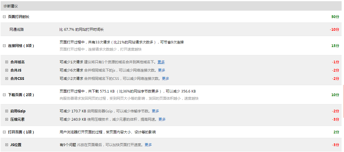 使用百度统计,分析了一下网站速度,百度也给了一下建议方法。
