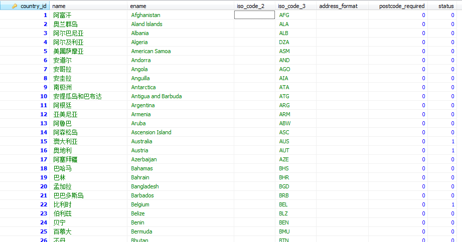 update ry_country SET `iso_code_2`= "AF" where iso_code_3="AFG"; update ry_country SET `iso_code_2`= "AL" where iso_code_3="ALB"; update ry_country SET `iso_code_2`= "DZ" where iso_code_3="DZA"; update ry_country SET `iso_code_2`= "AS" where iso_code_3="ASM"; update ry_country SET `iso_code_2`= "AD" where iso_code_3="AND"; update ry_country SET `iso_code_2`= "AO" where iso_code_3="AGO"; update ry_country SET `iso_code_2`= "AI" where iso_code_3="AIA"; update ry_country SET `iso_code_2`= "AQ" where iso_code_3="ATA"; update ry_country SET `iso_code_2`= "AG" where iso_code_3="ATG"; update ry_country SET `iso_code_2`= "AR" where iso_code_3="ARG"; update ry_country SET `iso_code_2`= "AM" where iso_code_3="ARM"; update ry_country SET `iso_code_2`= "AW" where iso_code_3="ABW"; update ry_country SET `iso_code_2`= "AU" where iso_code_3="AUS"; update ry_country SET `iso_code_2`= "AT" where iso_code_3="AUT"; update ry_country SET `iso_code_2`= "AZ" where iso_code_3="AZE"; update ry_country SET `iso_code_2`= "BS" where iso_code_3="BHS"; update ry_country SET `iso_code_2`= "BH" where iso_code_3="BHR"; update ry_country SET `iso_code_2`= "BD" where iso_code_3="BGD"; update ry_country SET `iso_code_2`= "BB" where iso_code_3="BRB"; update ry_country SET `iso_code_2`= "BY" where iso_code_3="BLR"; update ry_country SET `iso_code_2`= "BE" where iso_code_3="BEL"; update ry_country SET `iso_code_2`= "BZ" where iso_code_3="BLZ"; update ry_country SET `iso_code_2`= "BJ" where iso_code_3="BEN"; update ry_country SET `iso_code_2`= "BM" where iso_code_3="BMU"; update ry_country SET `iso_code_2`= "BT" where iso_code_3="BTN"; update ry_country SET `iso_code_2`= "BO" where iso_code_3="BOL"; update ry_country SET `iso_code_2`= "BA" where iso_code_3="BIH"; update ry_country SET `iso_code_2`= "BW" where iso_code_3="BWA"; update ry_country SET `iso_code_2`= "BV" where iso_code_3="BVT"; update ry_country SET `iso_code_2`= "BR" where iso_code_3="BRA"; update ry_country SET `iso_code_2`= "IO" where iso_code_3="IOT"; update ry_country SET `iso_code_2`= "BN" where iso_code_3="BRN"; update ry_country SET `iso_code_2`= "BG" where iso_code_3="BGR"; update ry_country SET `iso_code_2`= "BF" where iso_code_3="BFA"; update ry_country SET `iso_code_2`= "BI" where iso_code_3="BDI"; update ry_country SET `iso_code_2`= "KH" where iso_code_3="KHM"; update ry_country SET `iso_code_2`= "CM" where iso_code_3="CMR"; update ry_country SET `iso_code_2`= "CA" where iso_code_3="CAN"; update ry_country SET `iso_code_2`= "CV" where iso_code_3="CPV"; update ry_country SET `iso_code_2`= "KY" where iso_code_3="CYM"; update ry_country SET `iso_code_2`= "CF" where iso_code_3="CAF"; update ry_country SET `iso_code_2`= "TD" where iso_code_3="TCD"; update ry_country SET `iso_code_2`= "CL" where iso_code_3="CHL"; update ry_country SET `iso_code_2`= "CN" where iso_code_3="CHN"; update ry_country SET `iso_code_2`= "CX" where iso_code_3="CXR"; update ry_country SET `iso_code_2`= "CC" where iso_code_3="CCK"; update ry_country SET `iso_code_2`= "CO" where iso_code_3="COL"; update ry_country SET `iso_code_2`= "KM" where iso_code_3="COM"; update ry_country SET `iso_code_2`= "CG" where iso_code_3="COG"; update ry_country SET `iso_code_2`= "CK" where iso_code_3="COK"; update ry_country SET `iso_code_2`= "CR" where iso_code_3="CRI"; update ry_country SET `iso_code_2`= "CI" where iso_code_3="CIV"; update ry_country SET `iso_code_2`= "HR" where iso_code_3="HRV"; update ry_country SET `iso_code_2`= "CU" where iso_code_3="CUB"; update ry_country SET `iso_code_2`= "CY" where iso_code_3="CYP"; update ry_country SET `iso_code_2`= "CZ" where iso_code_3="CZE"; update ry_country SET `iso_code_2`= "DK" where iso_code_3="DNK"; update ry_country SET `iso_code_2`= "DJ" where iso_code_3="DJI"; update ry_country SET `iso_code_2`= "DM" where iso_code_3="DMA"; update ry_country SET `iso_code_2`= "DO" where iso_code_3="DOM"; update ry_country SET `iso_code_2`= "TL" where iso_code_3="TLS"; update ry_country SET `iso_code_2`= "EC" where iso_code_3="ECU"; update ry_country SET `iso_code_2`= "EG" where iso_code_3="EGY"; update ry_country SET `iso_code_2`= "SV" where iso_code_3="SLV"; update ry_country SET `iso_code_2`= "GQ" where iso_code_3="GNQ"; update ry_country SET `iso_code_2`= "ER" where iso_code_3="ERI"; update ry_country SET `iso_code_2`= "EE" where iso_code_3="EST"; update ry_country SET `iso_code_2`= "ET" where iso_code_3="ETH"; update ry_country SET `iso_code_2`= "FK" where iso_code_3="FLK"; update ry_country SET `iso_code_2`= "FO" where iso_code_3="FRO"; update ry_country SET `iso_code_2`= "FJ" where iso_code_3="FJI"; update ry_country SET `iso_code_2`= "FI" where iso_code_3="FIN"; update ry_country SET `iso_code_2`= "FR" where iso_code_3="FRA"; update ry_country SET `iso_code_2`= "GF" where iso_code_3="GUF"; update ry_country SET `iso_code_2`= "PF" where iso_code_3="PYF"; update ry_country SET `iso_code_2`= "TF" where iso_code_3="ATF"; update ry_country SET `iso_code_2`= "GA" where iso_code_3="GAB"; update ry_country SET `iso_code_2`= "GM" where iso_code_3="GMB"; update ry_country SET `iso_code_2`= "GE" where iso_code_3="GEO"; update ry_country SET `iso_code_2`= "DE" where iso_code_3="DEU"; update ry_country SET `iso_code_2`= "GH" where iso_code_3="GHA"; update ry_country SET `iso_code_2`= "GI" where iso_code_3="GIB"; update ry_country SET `iso_code_2`= "GR" where iso_code_3="GRC"; update ry_country SET `iso_code_2`= "GL" where iso_code_3="GRL"; update ry_country SET `iso_code_2`= "GD" where iso_code_3="GRD"; update ry_country SET `iso_code_2`= "GP" where iso_code_3="GLP"; update ry_country SET `iso_code_2`= "GU" where iso_code_3="GUM"; update ry_country SET `iso_code_2`= "GT" where iso_code_3="GTM"; update ry_country SET `iso_code_2`= "GN" where iso_code_3="GIN"; update ry_country SET `iso_code_2`= "GW" where iso_code_3="GNB"; update ry_country SET `iso_code_2`= "GY" where iso_code_3="GUY"; update ry_country SET `iso_code_2`= "HT" where iso_code_3="HTI"; update ry_country SE