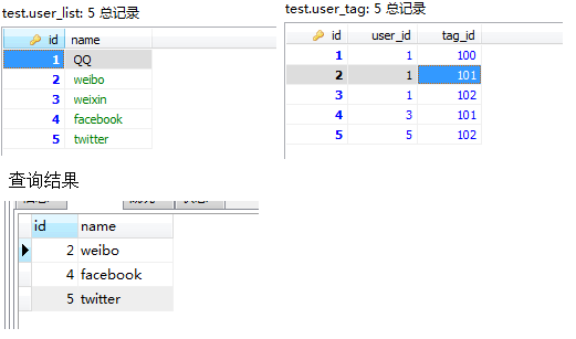 1 | SELECT * FROM user_list a WHERE NOT EXISTS(SELECT 1 FROM user_tag b WHERE a.id=b.user_id AND b.tag_id='101') |