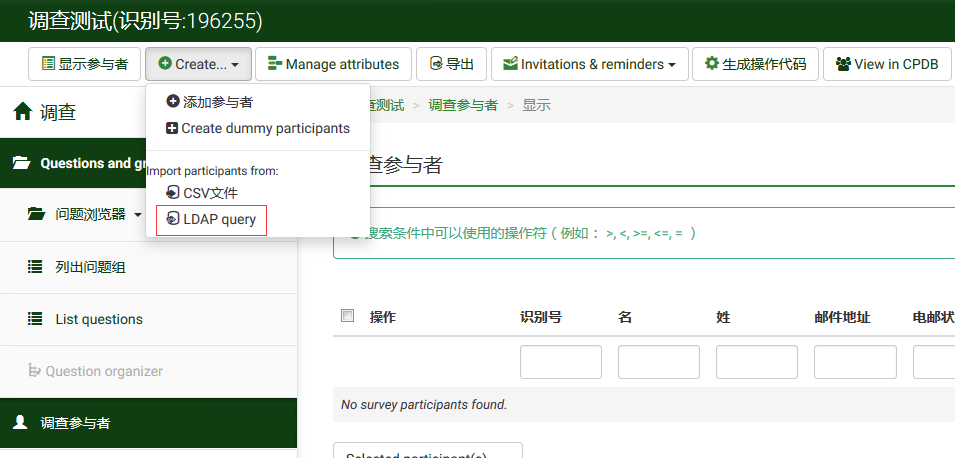 $query_id: is the id of the LDAP query $ldap_queries[$query_id]['ldapServerId']: bind the query to a specific server $ldap_queries[$query_id]['name']: String describing the query. It will be displayed in the GUI $ldap_queries[$query_id]['userbase']: Root DN to useforusersearches $ldap_queries[$query_id]['userfilter']: filterusedtoselectpotentialusers' entries. Itmustbeenclosedinparenthesis $ldap_queries[$query_id]['userscope']: scopeoftheLDAPsearchforusers ('base', 'one' or 'sub') $ldap_queries[$query_id]['firstname_attr']: LdapattributethatwillbemappedtotheFirstnamefieldofthetokenentry $ldap_queries[$query_id]['lastname_attr']: LdapattributethatwillbemappedtotheLastnamefieldofthetokenentry $ldap_queries[$query_id]['email_attr']: Ldapattributethatwillbemappedtotheemailaddressfieldofthetokenentry Optionalyyoucanretrievemoreinformationfromthedirectory: $ldap_queries[$query_id]['token_attr']: Ldapattributethatwillbemappedtothetokencode $ldap_queries[$query_id]['language']: Ldapattributethatwillbemappedtotheuserlanguagecode $ldap_queries[$query_id]['attr1']: Ldapattributethatwillbemappedtotheattribute_1field $ldap_queries[$query_id]['attr2']: Ldapattributethatwillbemappedtotheattribute_2field