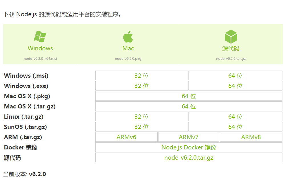 下载网址:http://nodejs.cn/download/