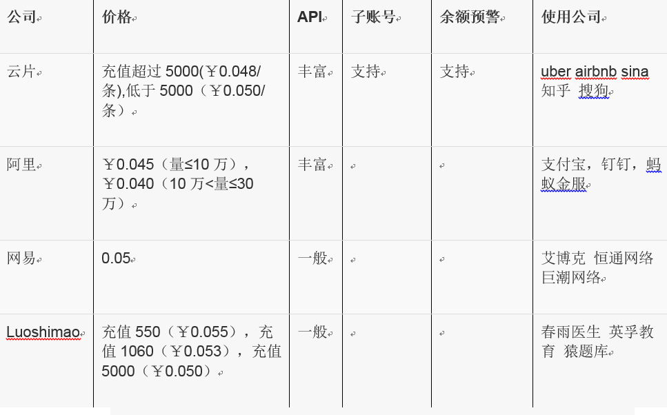 分析了主要的短信供应商