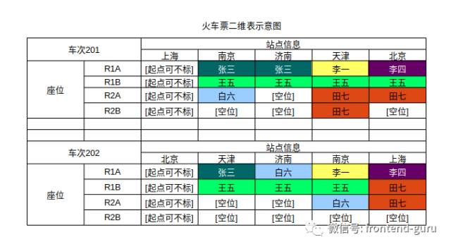 所以如果有一个站点与位置的二维表的话,很容易就能描述完成一趟车的车票信息。