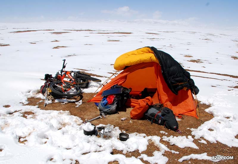 早晨醒来,掀开帐篷一看,这雪大的完全是羌塘强迫我五一节休假。